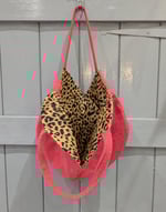 * Pink, slightly furry fabric, lined in leopard print cotton
