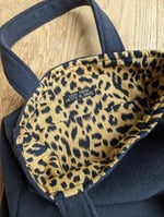 * Navy wool mix hand made tote bag with leopard print lining, and internal pocket