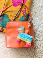 * All the colours of the rainbow make up this little fringed Pinata Llama bag charm