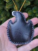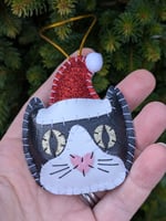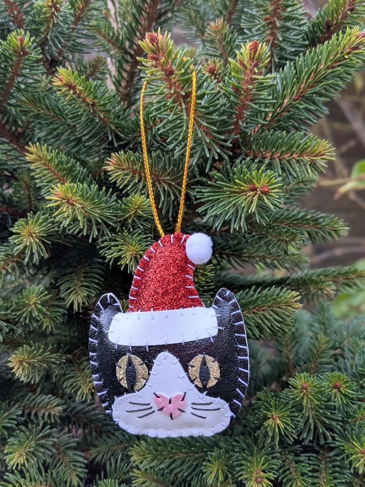 * Made from faux leather, with metallic gold glittery eyes and red glittery Santa hat with a white pom pom on top