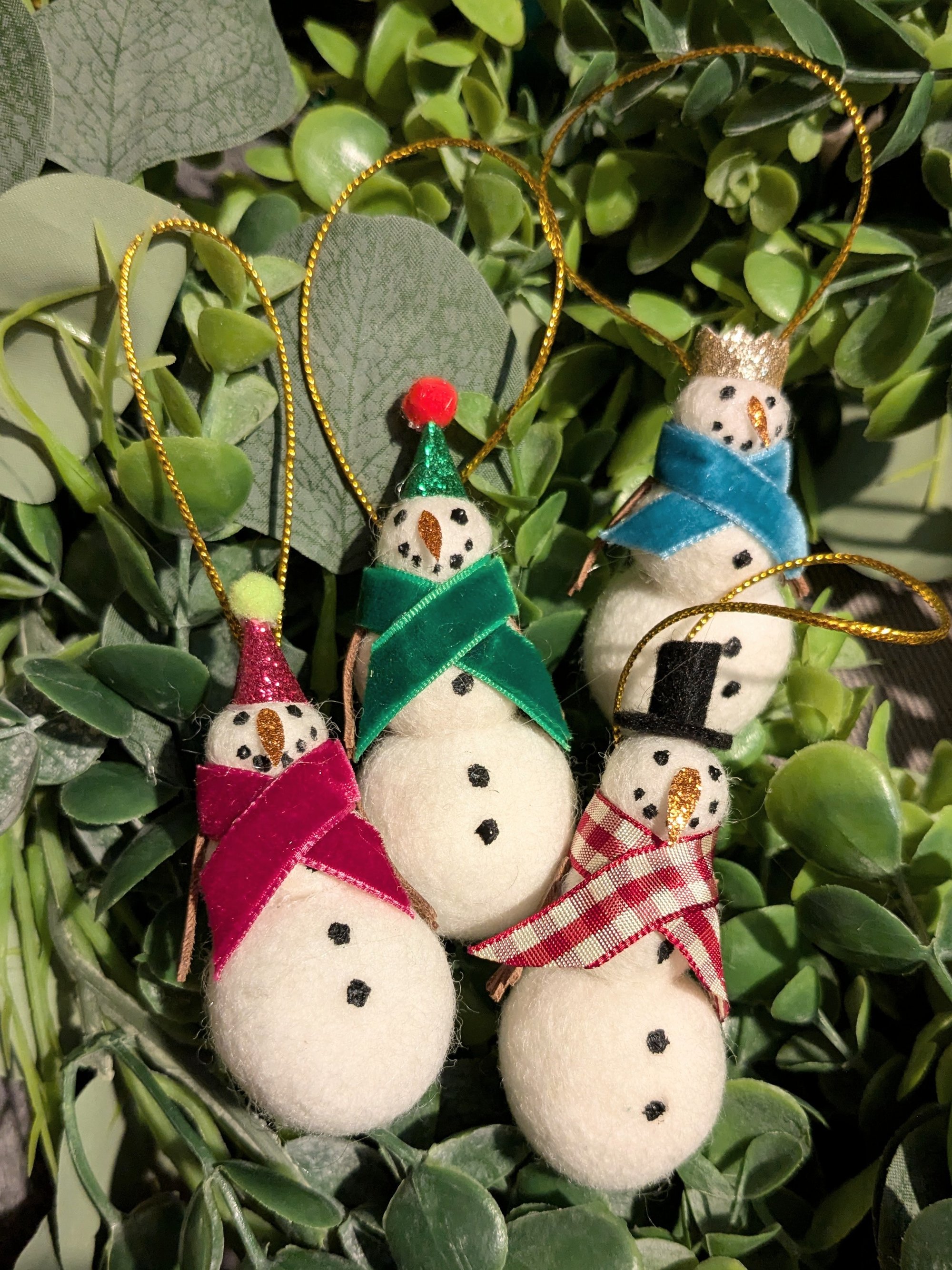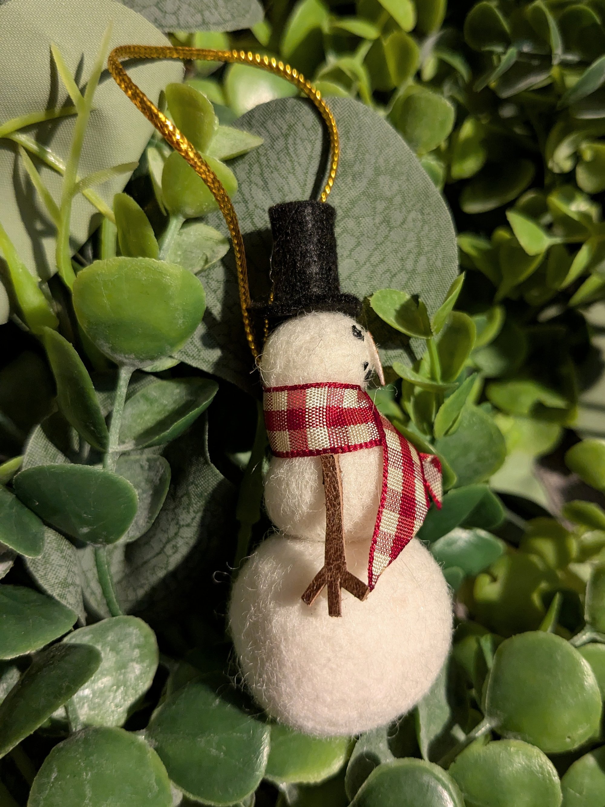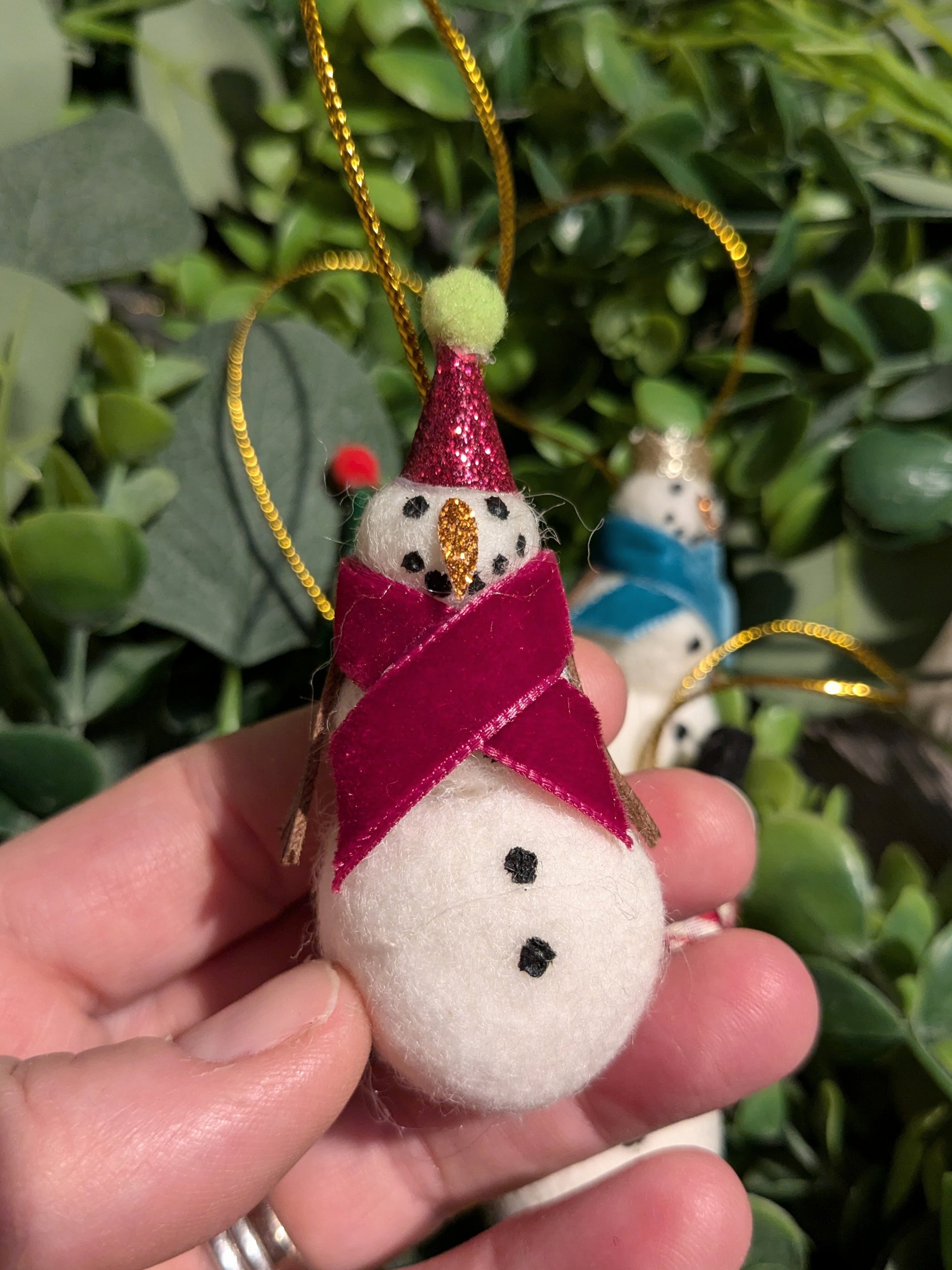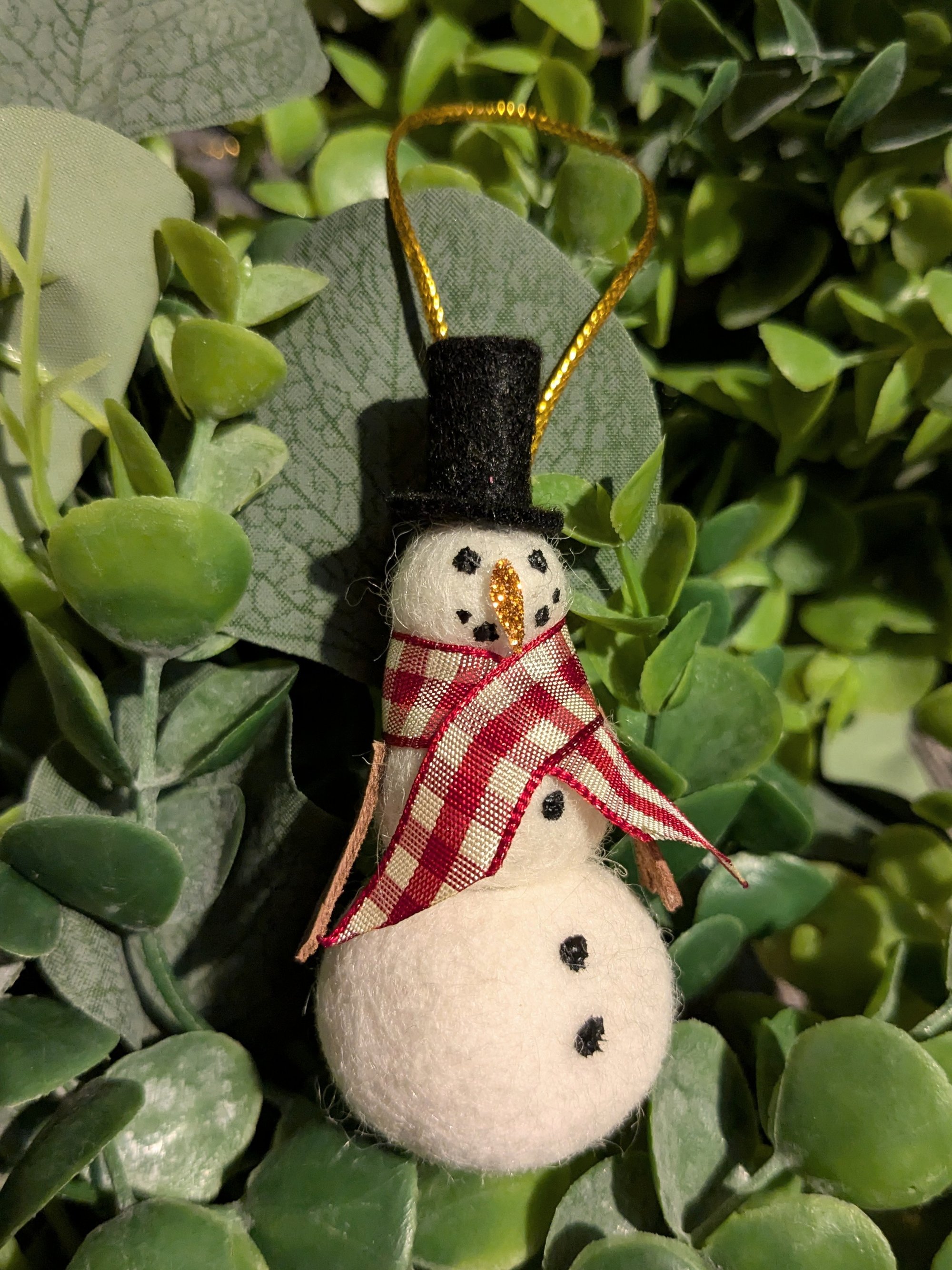 * Dinky little snowman, made from felted wool with tiny glittery carrot nose and leather arms